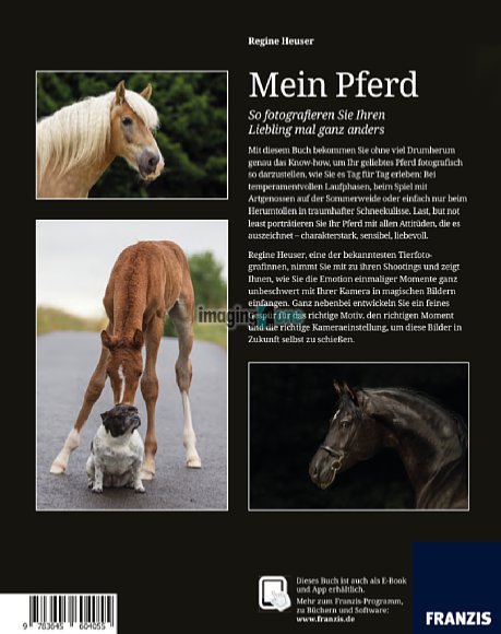 Tierfotografin und Autorin Regine Heuser führt den Leser Schritt für Schritt in die Grundkenntnisse der digitalen Fotografie ein. Dabei ist es egal, ob die eigene Kamera eine DSLR oder eine Spiegellose ist. Das Buch vermittelt zudem wie der richtige Moment, die passende Perspektive und das richtige Licht gefunden wird, um den behuften Freund gelungen in Szene zu setzen. Diese Publikation ist als Download und als gedrucktes Buch erhältlich.