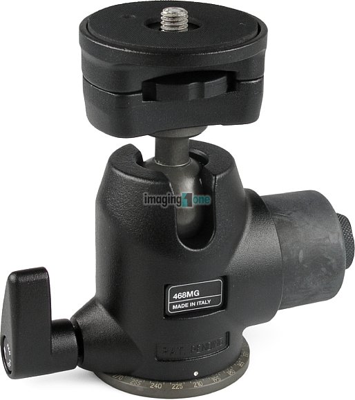 Der MA 468MG ist die Ausführung ohne Schnellwechselsystem. Er verfügt über eine Aufnahmeplatte mit einer Befestigungsschraube für Geräte mit 1/4-Zoll- und 3/8-Zoll-Gewinde, bei der das 3/8-Zoll-Gewinde als federnd gelagertes, versenkbares Übergewinde ausgeführt ist. Die Montageplatte hat einen Durchmesser von 60 mm