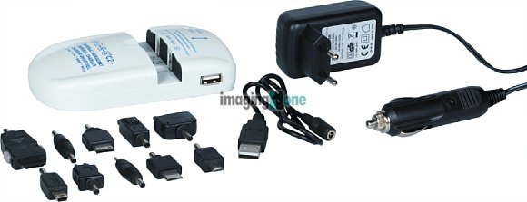 – Patentierte Klemmvorrichtung und Kontaktierung für alle* Li-Ion Akkupacks aus Digital- und Videokameras. – Mobiltelefon- und USB Ladefunktion – Das Gerät arbeitet vollständig ohne zusätzliche Ladeschalen oder Adapterplatten – Automatische Erkennung der Polarität und der Akkuspannung von 3.6-3.7V und 7.2-7.4V Akkutypen – Intelligente Vmax Schnellladung mit automatischer Ladestromanpassung und Akkudefekterkennung – Nachladephase mit Überladeschutz und 10 Stunden Sicherheitstimer – Abmessungen ca. 125 x 65 x 27 mm – Weltweit einsetzbar durch ein besonders leichtes und kompaktes 110-240V Schaltnetzteil *Ausgenommen sind Akkupacks mit Kontakten auf gegenüberliegenden Gehäuseseiten