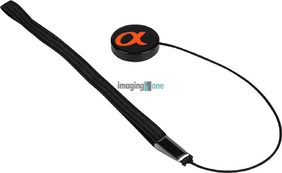 Selbstklebende Objektivdeckelsicherung mit Alpha-Logo. Der Gurt wird um das Objektiv gelegt und die Objektivdeckelsicherung auf den Objektivdeckel geklebt. Somit kann der Objektivdeckel nicht mehr verloren gehen.